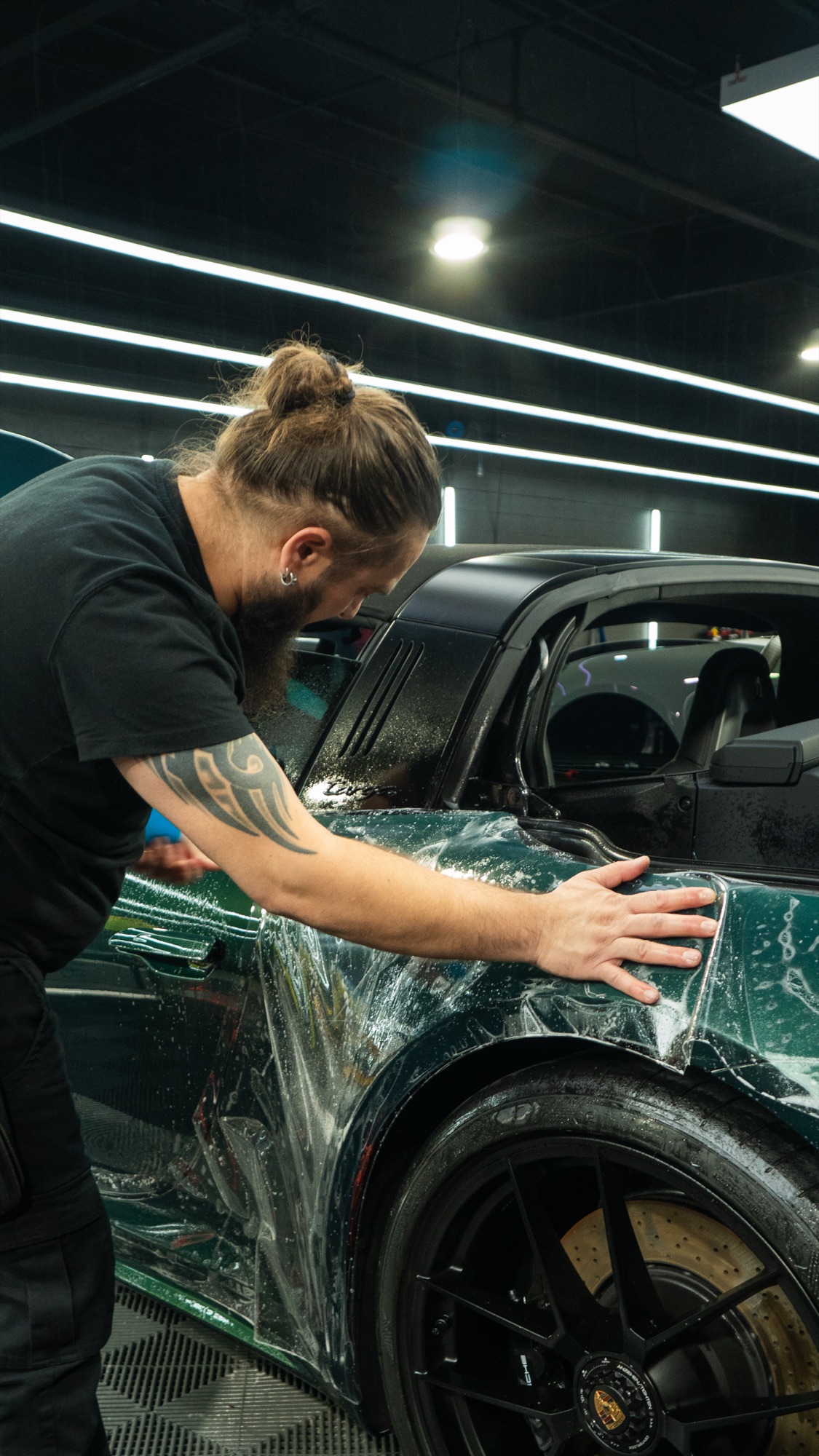 Surface must be defect-free and contamination-free. We wash, clay bar, and inspect every panel before any film goes on.